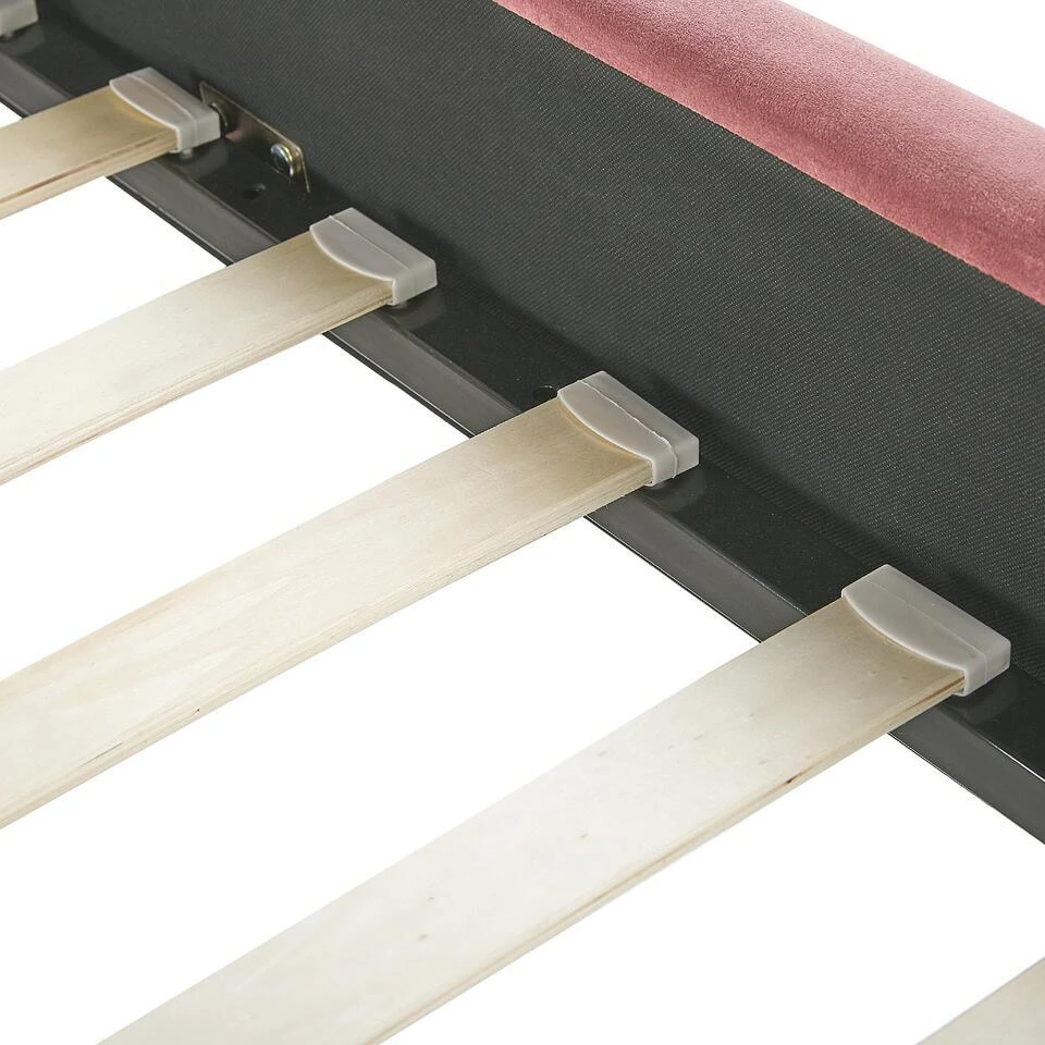 Extra informatie: Vanwege het ontwerp van het bed, raden we aan een matras te gebruiken die maximaal 20 centimeter hoog is. De kleur van het velvet oppervlak kan iets afwijken van de afbeelding. Dit kan komen door verschillende lichtsoorten of in welke richting het materiaal gestreken wordt. Om de kleur effen te maken kun je over de stof heen strijken met de hand.