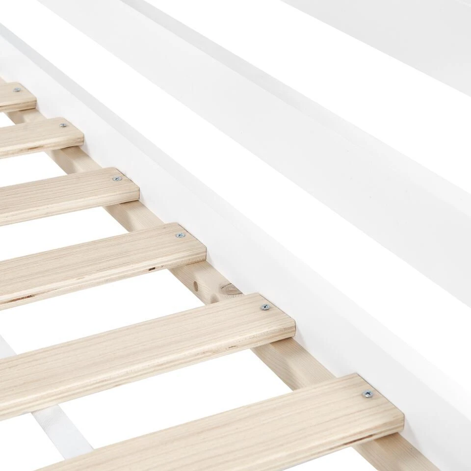 Belangrijkste eigenschappen: Schokabsorberende bedbodem voor goede ondersteuning, Minimalistisch, Scandinavische stijl, Perfect voor in de kinderkamer, Robuust frame, Voldoet aan de strenge veiligheidsnormen van het EN 747-1 certificaat, Gefabriceerd onder REACH regelgeving voor chemische veiligheid