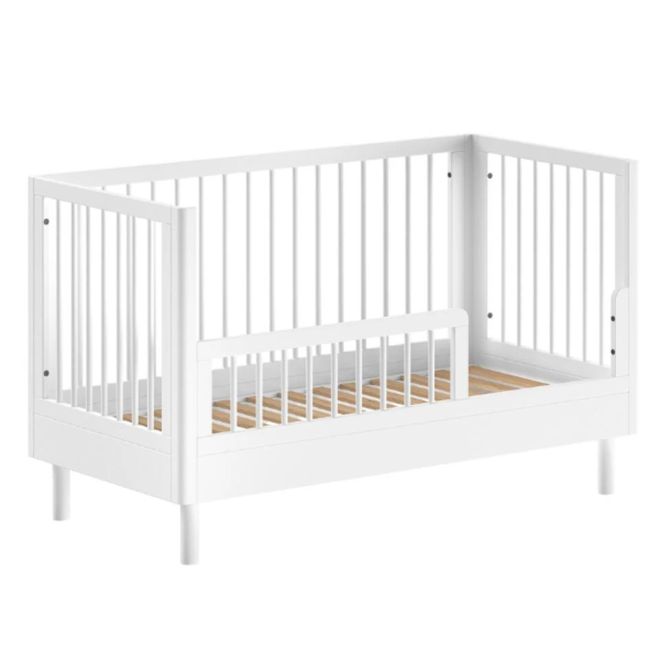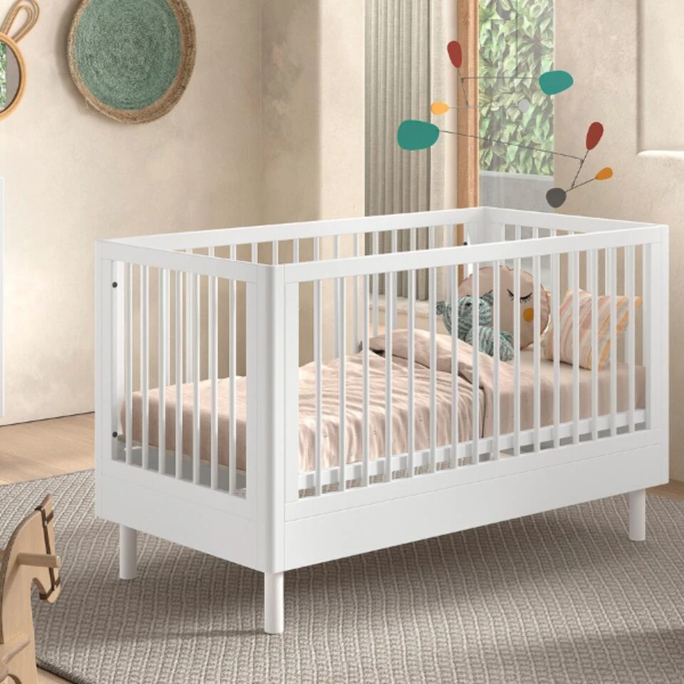 De collectie Forrest is ontworpen met oog voor detail en straalt kwaliteit uit op elk niveau. De meubels zijn gemaakt uit witgelakt massief beukenhout, wat niet alleen zorgt voor een warme en tijdloze uitstraling, maar ook voor duurzaamheid en stevigheid. Het ontwerp met afgeronde hoeken maakt deze collectie een uiterst veilige keuze voor de baby- of kinderkamer. Het babybed is geschikt voor een matras van 70x140cm. De bedbodem is verstelbaar op drie verschillende hoogtes, en het bed kan later ook omgebouwd worden tot peuterbed. Zo kan het bedje jarenlang meegroeien met je kindje.