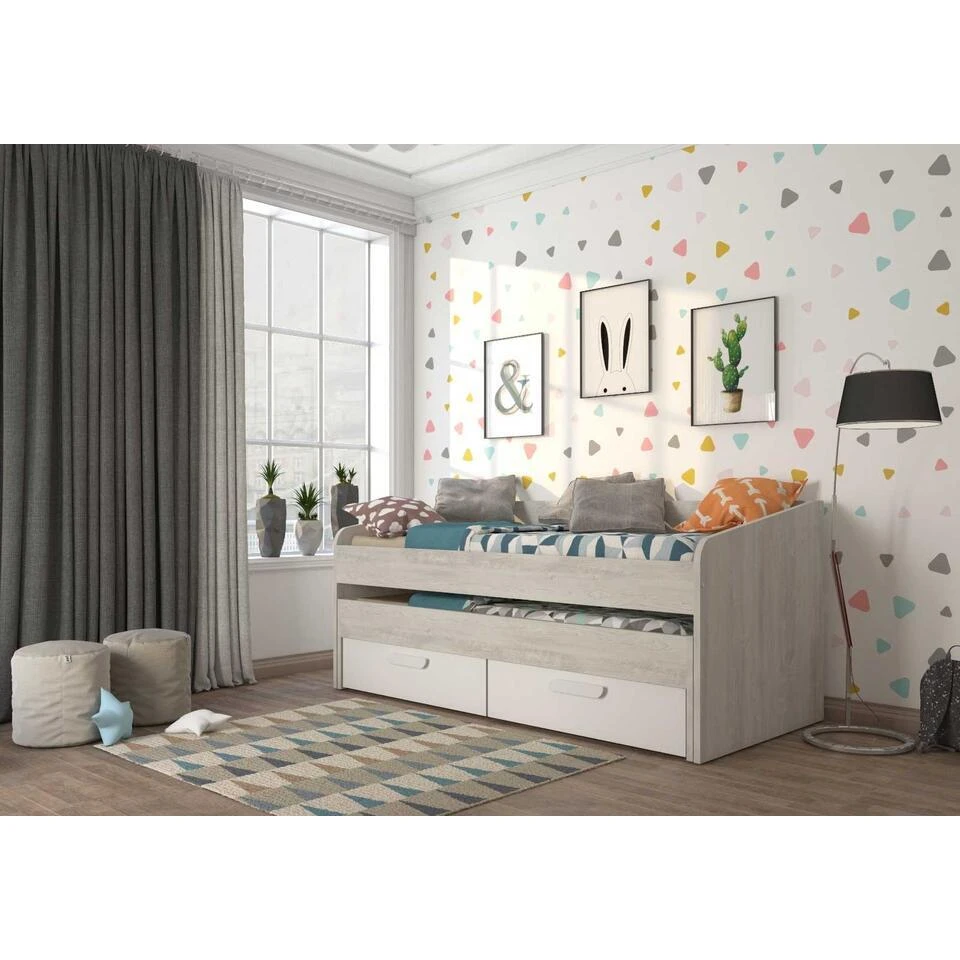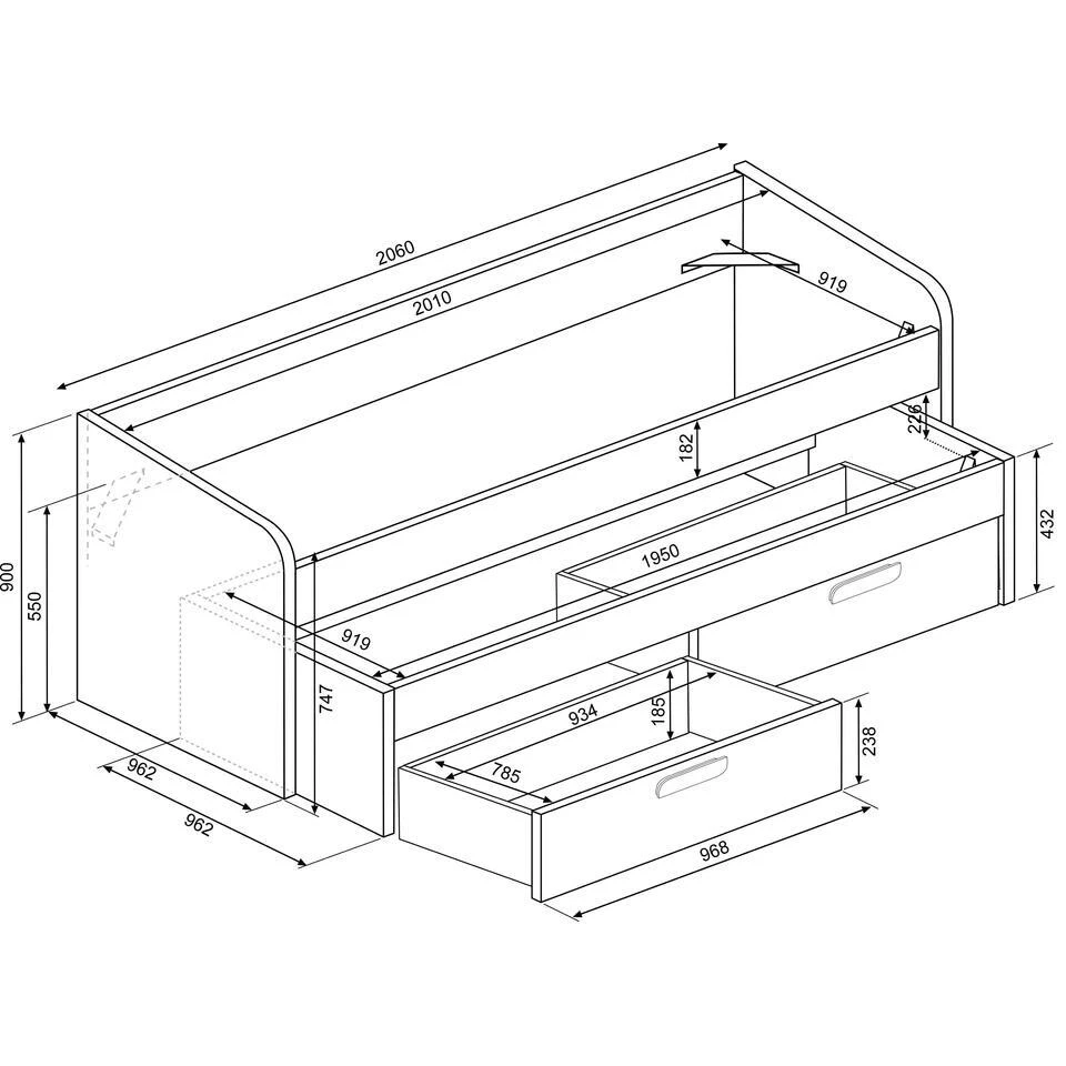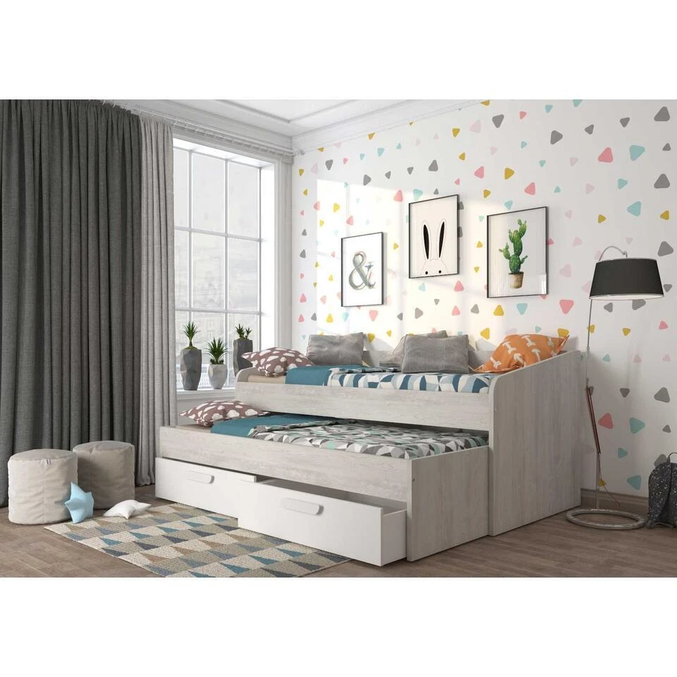 Een vriendje dat komt spelen en graag wil blijven slapen? Geen probleem! Met bed Bo12 heb je altijd plaats voor een onverwachte logé. Het bed is namelijk uitgerust met een onderschuifbed. Hierdoor is er plaats voor twee matrassen: een van 90 bij 200 cm (bovenste bed) en een van 90 bij 190 cm (onderschuifbed). Deze matrassen zijn, net zoals de lattenbodems, niet inbegrepen, maar kunnen wel aangekocht worden op onze website. Het onderschuifbed en de lades kunnen bovendien gemakkelijk met één hand vanonder het bed geschoven worden. De lades zijn voorzien van langwerpige handgrepen.