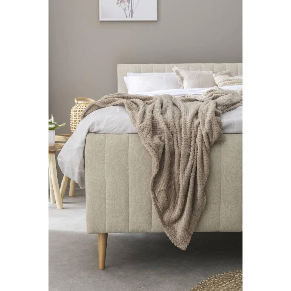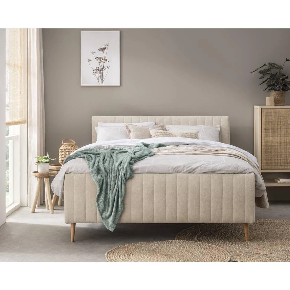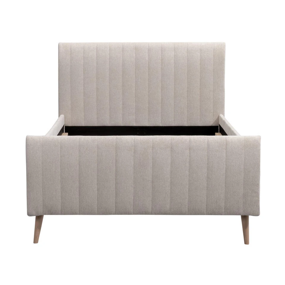 Bed Lieke is een moderne twijfelaar met een stijlvolle look in de kleur ecru. Het bed heeft een afmeting van 120×200 cm. Het hoofd- en voetenbord en de bedzijdes zijn omkleed met een Serta stof wat zorgt voor een luxe uitstraling en een zijdezachte touch. De beukenhouten, natuurlijke poten zorgen voor een klassieke afwerking.