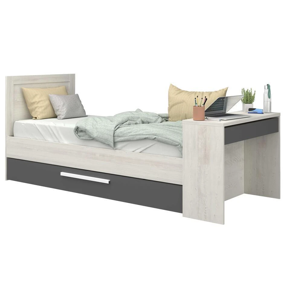 Bed Shipley 90×200 Met Bureau En Bedlade – Grenen/ Wit
