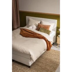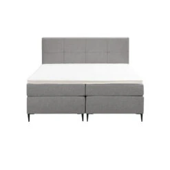 Boxspring Liv bestaat uit 2 boxen van 60×200 cm, 1 matras van 120×200 cm en 1 topdekmatras van 120x200x6 cm (bxhxd). Daarnaast bevat de Liv een hoofdbord met een afmeting van 120x110x7 cm (bxhxd) en 12 ronde pootjes. Bij de aanschaf van een boxspring is het ook belangrijk om te letten op de hoogte van je bed. Deze boxspring heeft een comfortabele instaphoogte van 60 cm.