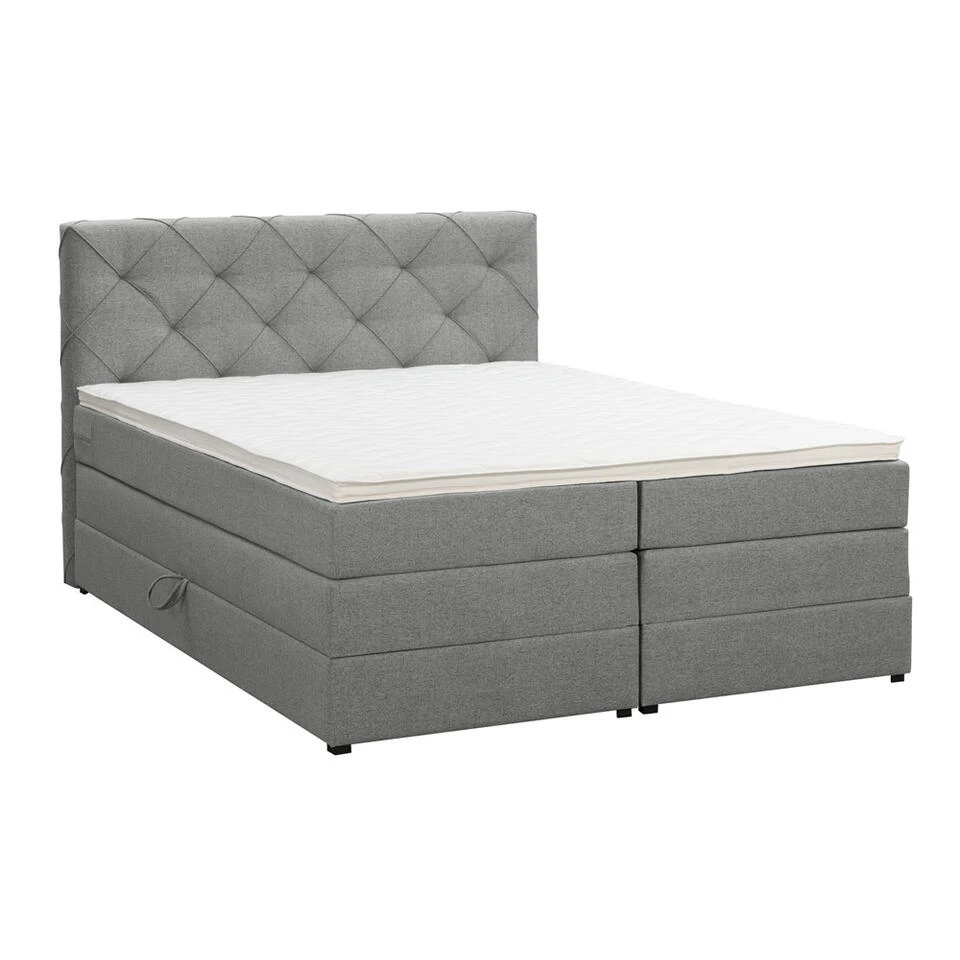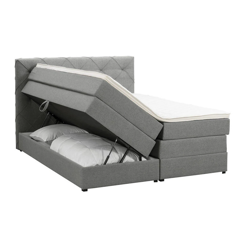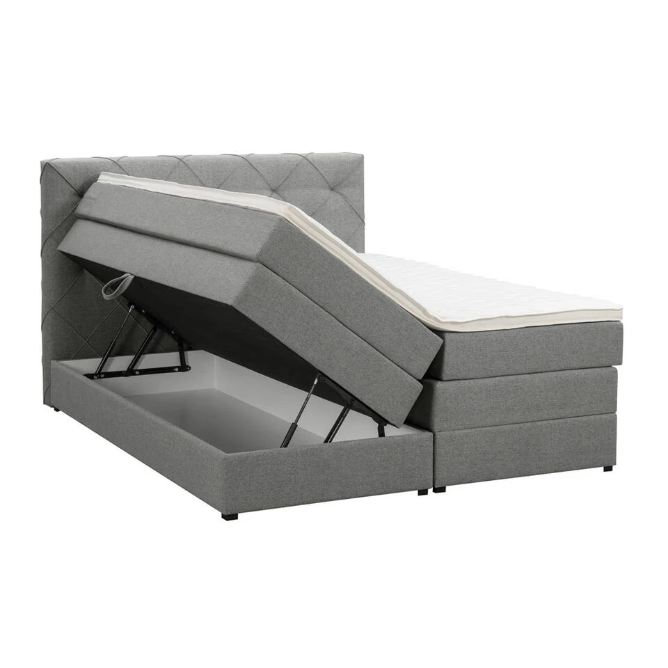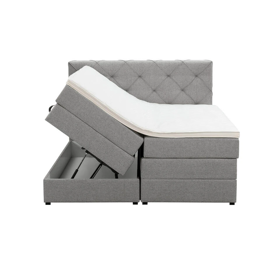 Boxspring met opbergruimte Liv is een boxspring met een afmeting van 160×200 cm. Deze prachtige boxspring is bekleed met een fijn geweven lichtgrijze stof en heeft een romantische uitstraling met een geruit hoofdbord. De Liv geruit is uitgerust met twee pocketveringmatrassen en daarnaast ook nog een koudschuim topdekmatras voor extra comfort. Het pocketveringmatras is omkeerbaar, bestaande uit zowel een medium- als een stevige kant. Hierdoor kun je zelf kiezen wat voor jou het meest comfortabel ligt.