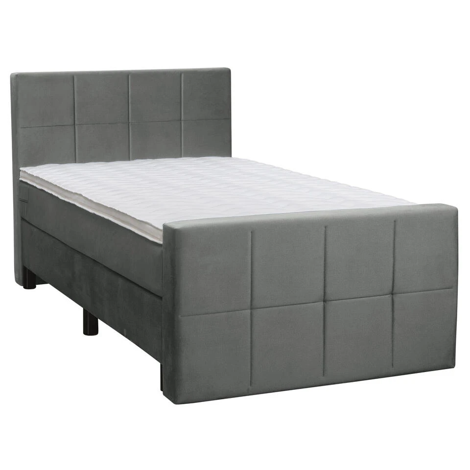 Boxspring Liv is een boxspring met een afmeting van 120×200 cm. Deze prachtige boxspring is bekleed met een velvet grijze stof en heeft een landelijke uitstraling met een geblokt hoofd- en voetbord. De Liv geblokt is uitgerust met een pocketveringmatras en daarnaast ook nog een koudschuim topdekmatras voor extra comfort. Het pocketveringmatras is omkeerbaar, bestaande uit zowel een medium- als een stevige kant. Hierdoor kun je zelf kiezen wat voor jou het meest comfortabel ligt.Â