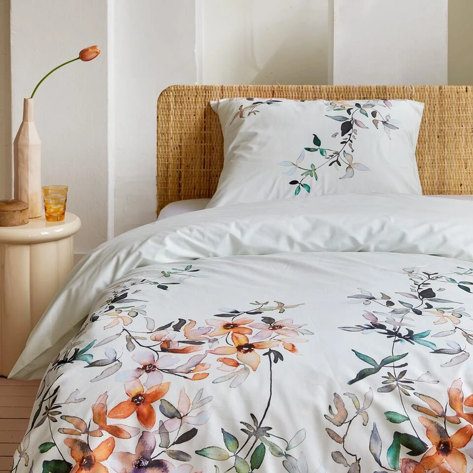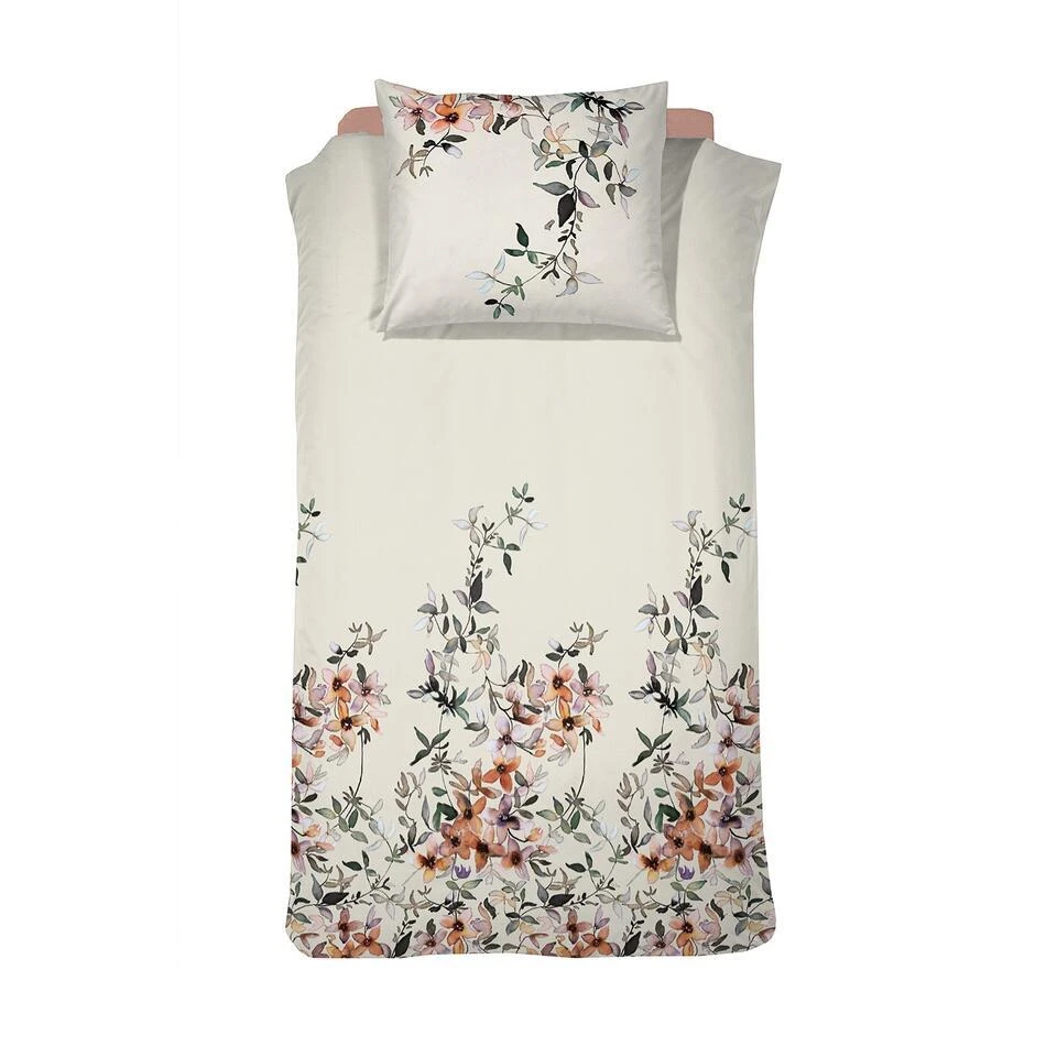 Een stijlvolle bloemen schildering is te bewonderen op het Cinderella dekbedovertrek Diana. De aquarel bloemen staan in volle bloei aan de onderzijde en vinden subtiel hun weg naar boven. Een kleurrijk maar evenwichtig ontwerp door de créme-kleurige ondergrond. Kleuren als terra, zachtroze en vergrijsde tinten maken dit romantische plaatje compleet.