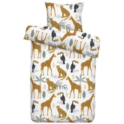 Geef de slaapkamer van je kleine een vrolijke uitstraling met dekbedovertrek Loet. De oranje kleur en de leuke dierenopdruk met giraffen zorgen voor een speelse uitstraling.
