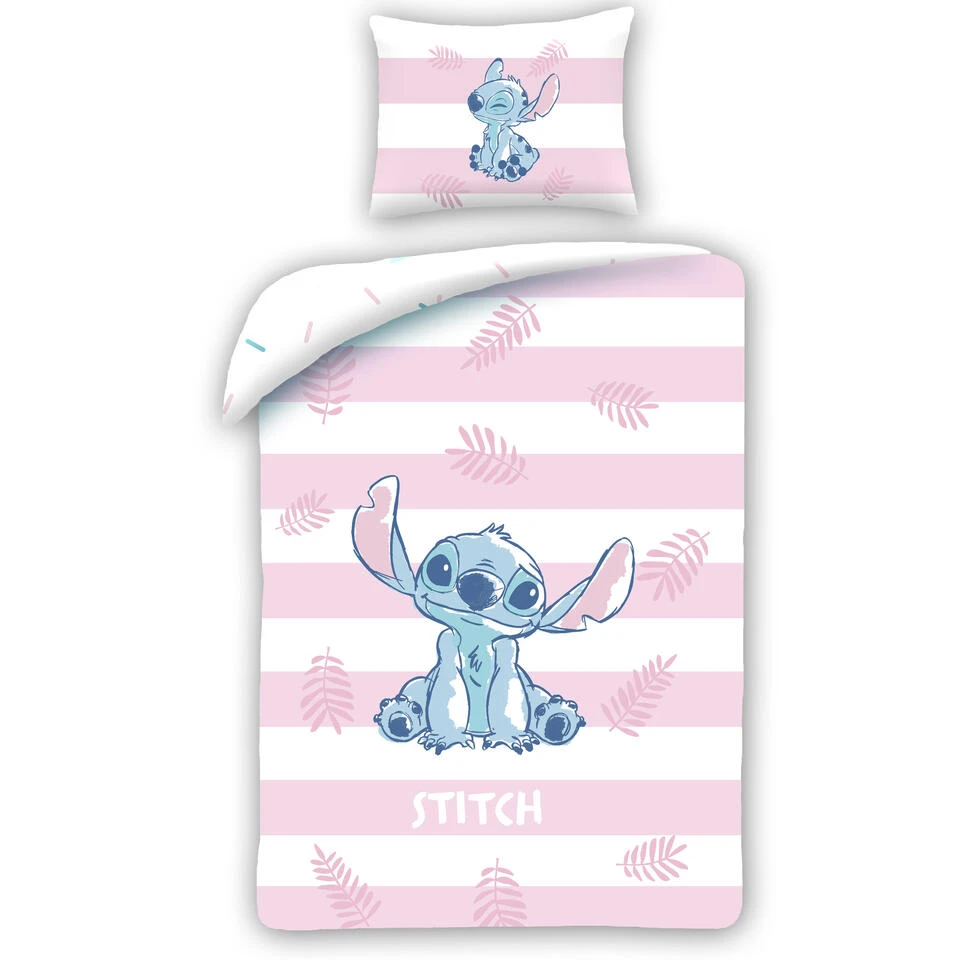 Disney Lilo & Stitch Dekbedovertrek, Stripes. Schattig, katoenen, dekbedovertrek van Stitch. Dit grappige blauwe wezentje is populair geworden door de Lilo & Stitch serie en heeft nu zijn eigen dekbedovertrek! Stitch is afgebeeld op een roze met wit gestreepte achtergrond. De achterzijde van de overtrek heeft een afwijkend dessin, wat leuke opties geeft bij het opmaken van het bed. Leuk om eens af te wisselen! Ben je nog op zoek naar een cadeau voor een echte Stitch fan? Dan is dit een leuk idee voor een verjaardag, Sinterklaas of Kerstmis.