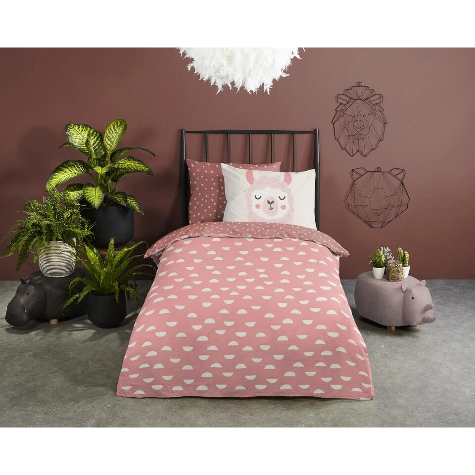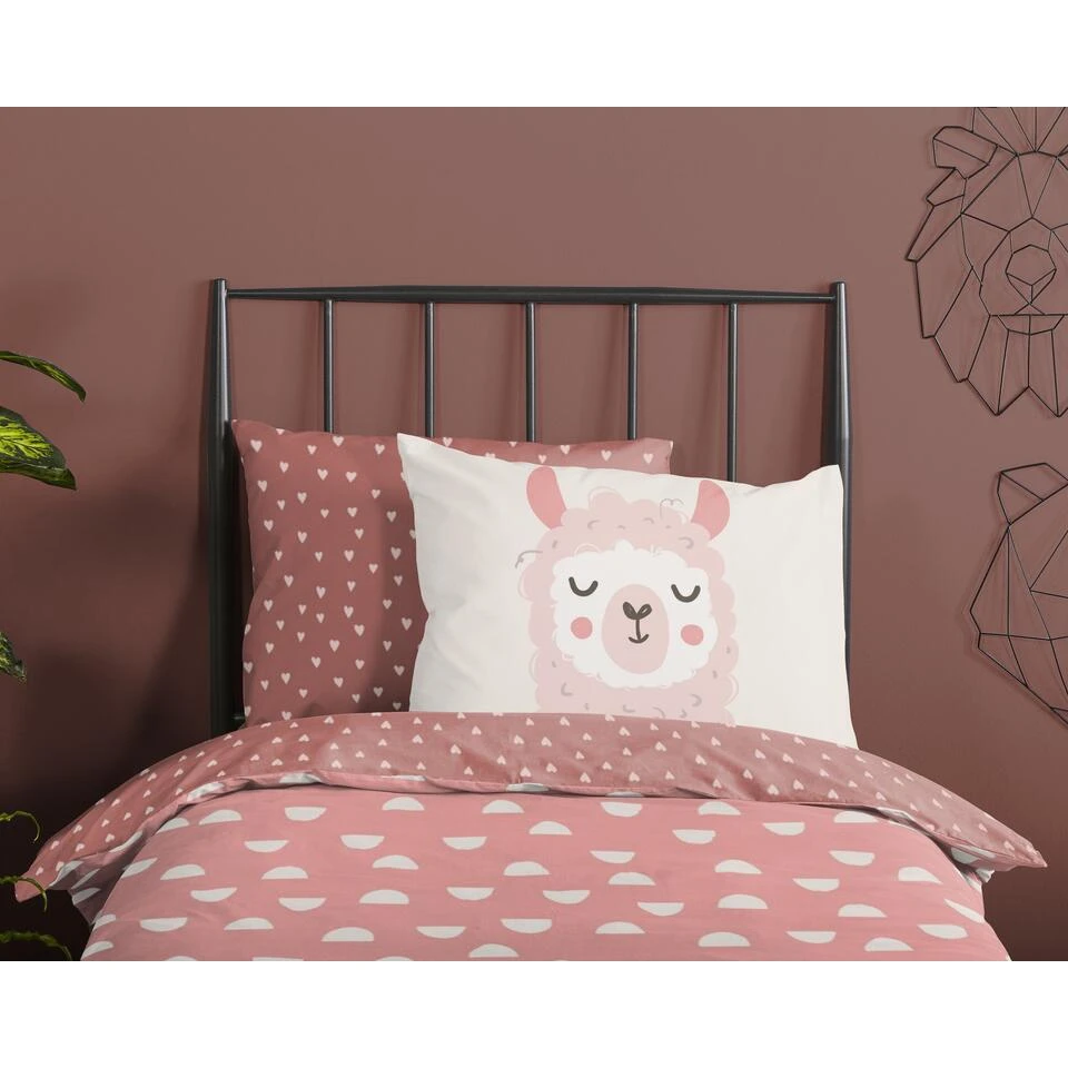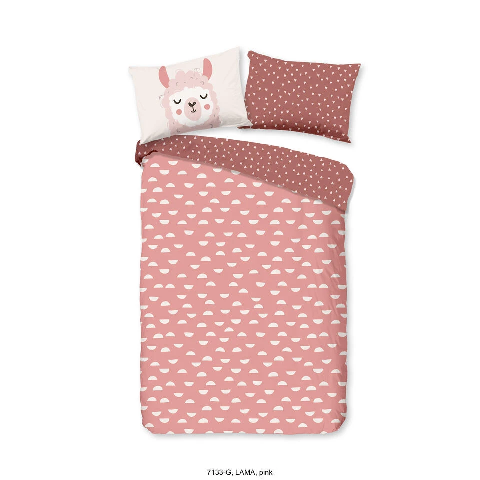 Good Morning Dekbedovertrek “Lama” – Roze – (120×150 Cm)