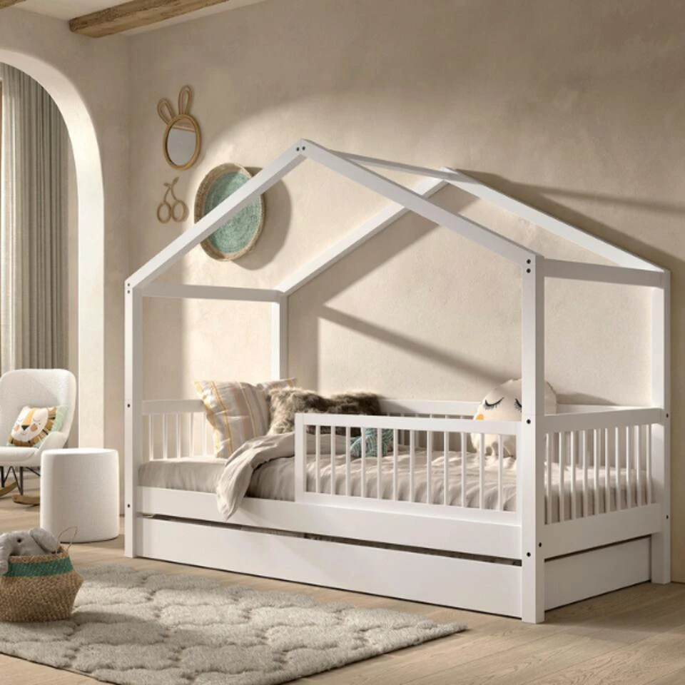 Huisbed Forrest 90x200cm Met Bedhekje En Bedlade – Wit Beukenhout