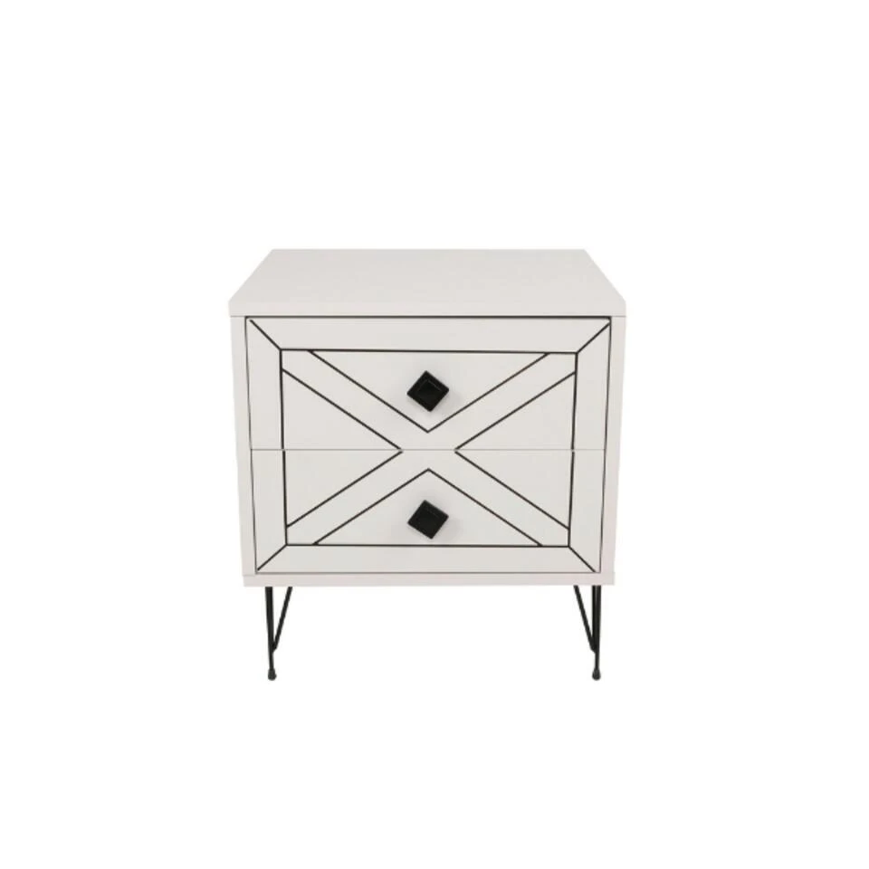 Kalune Nachtkastje – 100% Melamine Gecoat – Metalen Poten – 18mm Dikte – Wit