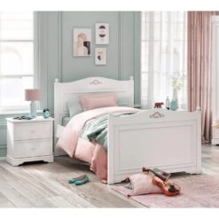 Het Rustic kinderbed is hét bed voor de meisjeskamer. Het witte meisjesbed heeft sierlijke elementen zoals de bloemen op het hoofd- en voetenbord en luxe poten. Optioneel kunt u er een bedlade bijbestellen. Deze kan dienen als logeerbed of als opberglade voor spullen.