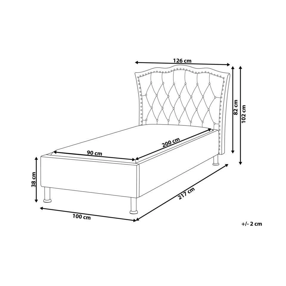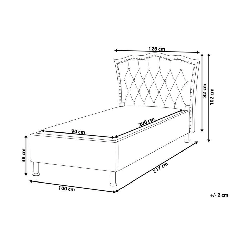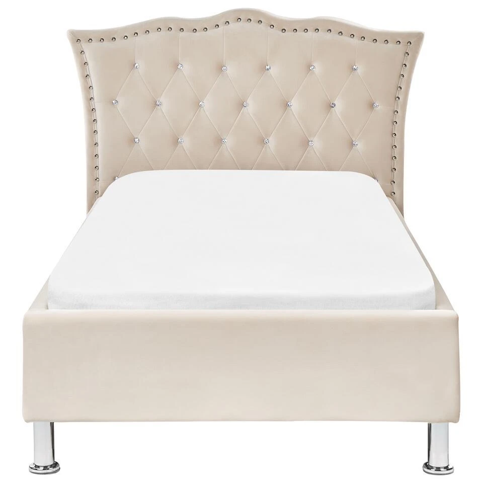 Extra informatie: Vanwege het ontwerp van het bed, raden we aan een matras te gebruiken die maximaal 20 centimeter hoog is. De kleur van het velvet oppervlak kan iets afwijken van de afbeelding. Dit kan komen door verschillende lichtsoorten of in welke richting het materiaal gestreken wordt. Om de kleur effen te maken kun je over de stof heen strijken met de hand.
