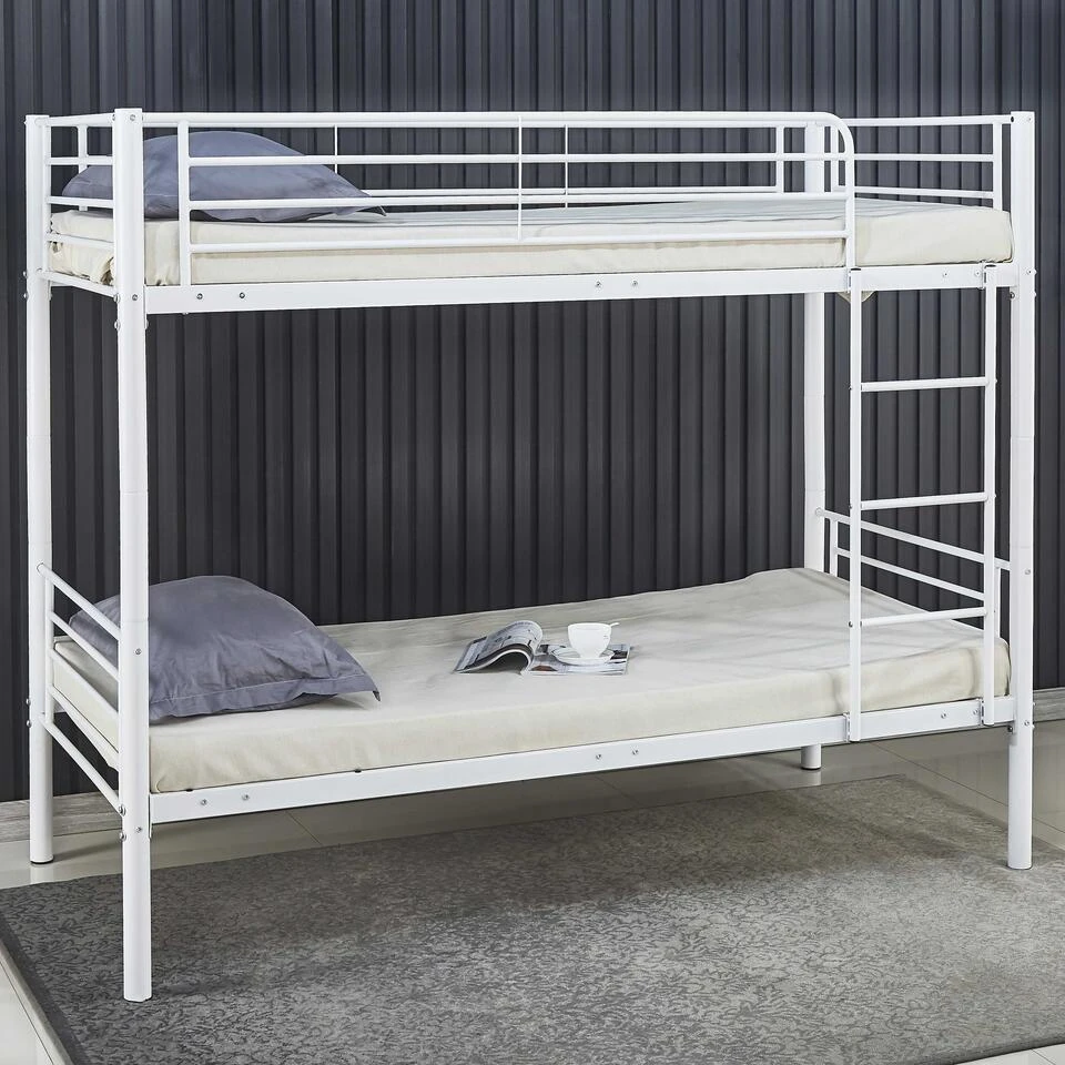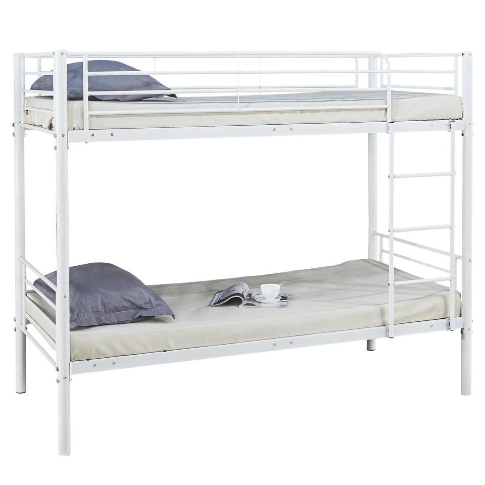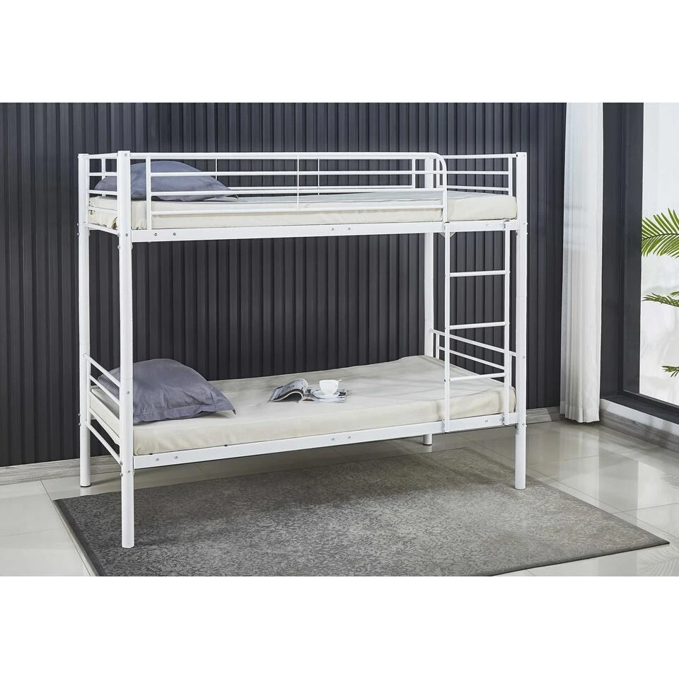 De metalen stapelbedden Dixie combineren modern design met functionaliteit en zijn de perfecte oplossing voor kamers waar ruimtebesparing essentieel is. De metalen constructie zorgt voor stevigheid en stabiliteit en geeft de bedden een coole uitstraling. De bedden hebben een ligoppervlak van 90x200cm. Het bovenste bed is te bereiken met een veilige ladder. Deze stapelbedden zijn geschikt voor zowel kinderen als volwassenen, waardoor ze perfect zijn voor gedeelde kamers of logeerkamers.