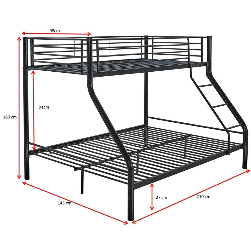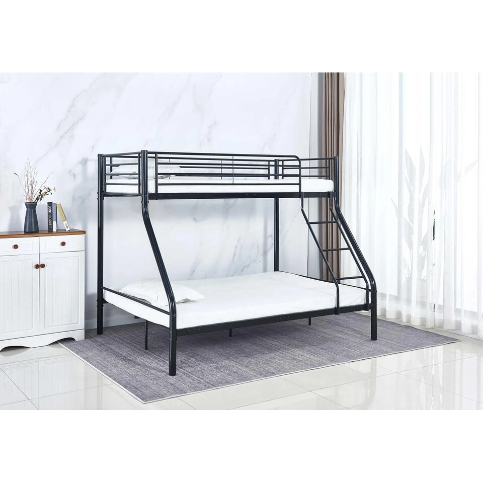 De metalen stapelbedden Trixie combineren modern design met functionaliteit en zijn de perfecte oplossing voor kamers waar ruimtebesparing essentieel is. De metalen constructie zorgt voor stevigheid en stabiliteit en geeft de bedden een coole uitstraling. Deze bedden zijn geschikt voor drie personen. Het onderste deel van het stapelbed Trixie heeft een ligoppervlak van 140x200cm en biedt slaapplaats voor twee personen. Het bovenste bed heeft een ligoppervlak van 90x200cm en is te bereiken met een veilige ladder. Deze stapelbedden zijn geschikt voor zowel kinderen als volwassenen, waardoor ze perfect zijn voor gedeelde kamers of logeerkamers.