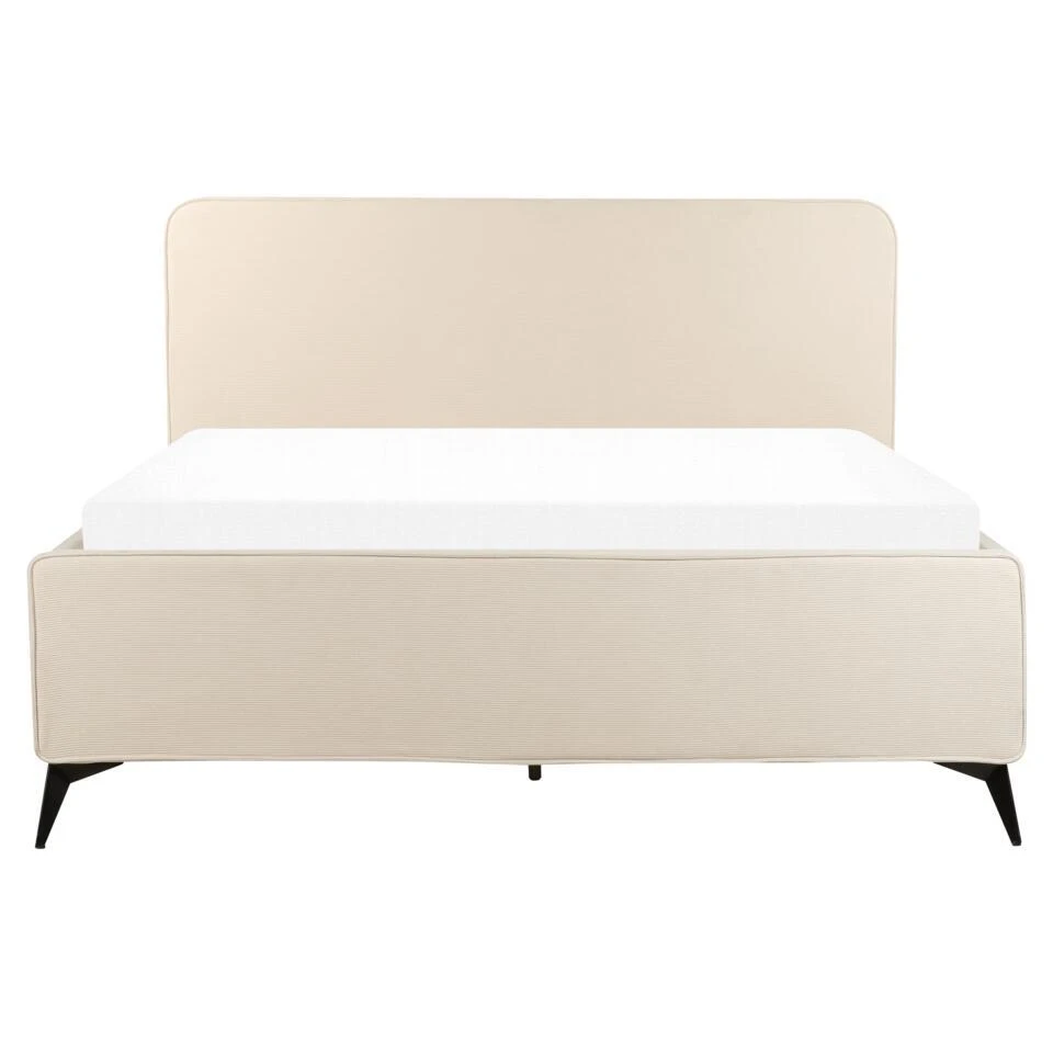 Extra informatie: Vanwege het ontwerp van het bed, raden we aan een matras te gebruiken die maximaal 20 centimeter hoog is. Houd er rekening mee dat corduroy-stof er een beetje anders uit kan zien wanneer het wordt blootgesteld aan verschillende soorten licht – het heeft de neiging meer te glinsteren bij daglicht en ziet er meer afgezwakt uit bij kunstlicht binnenshuis.