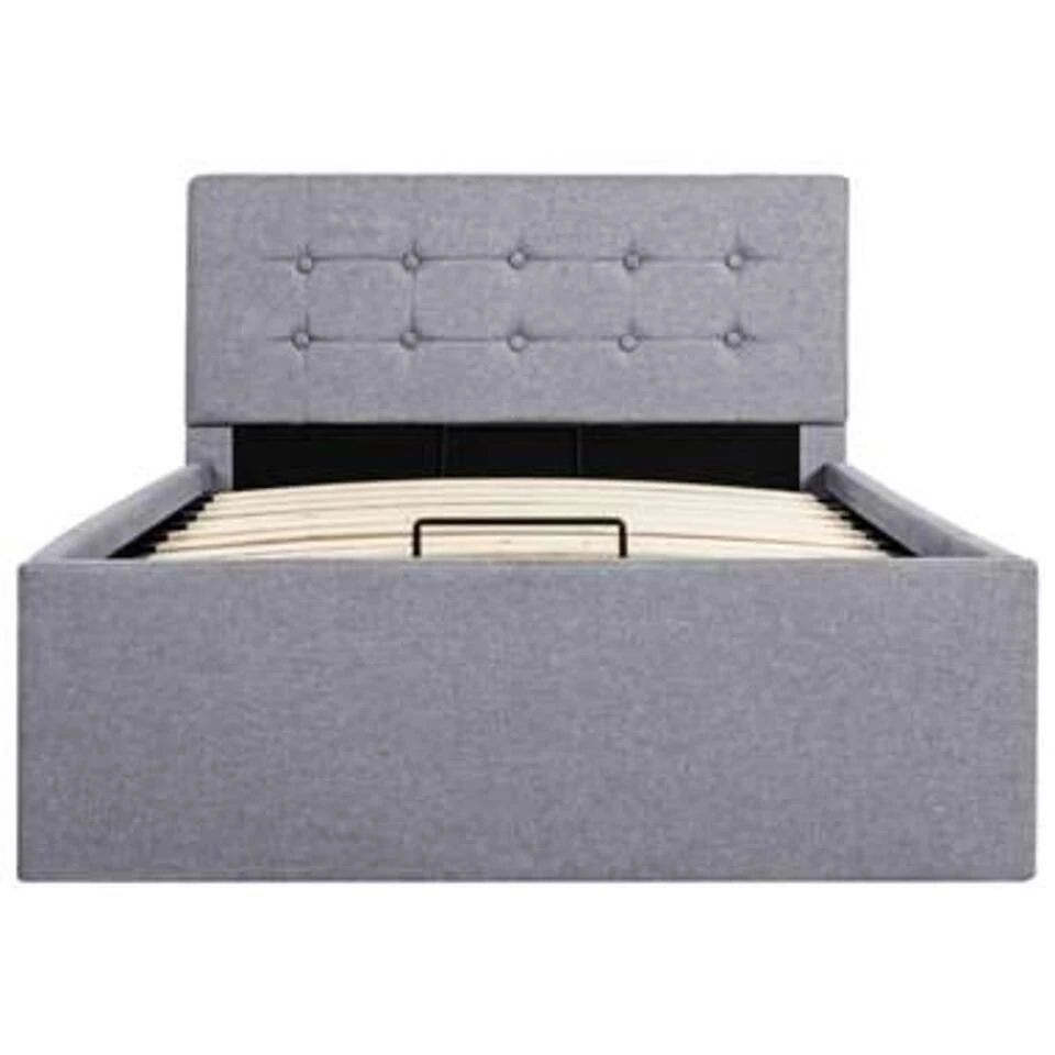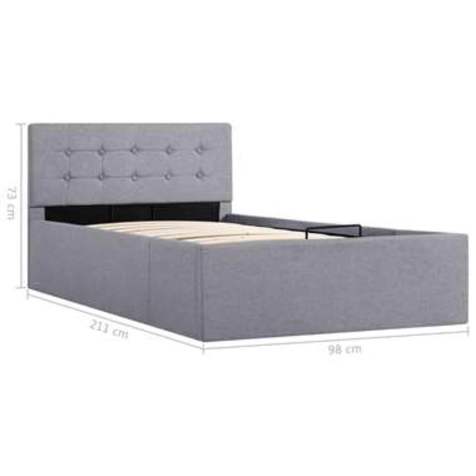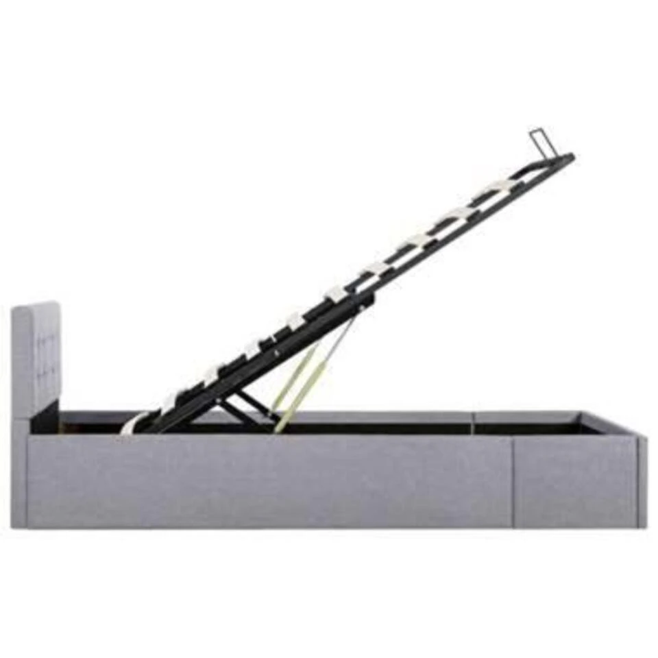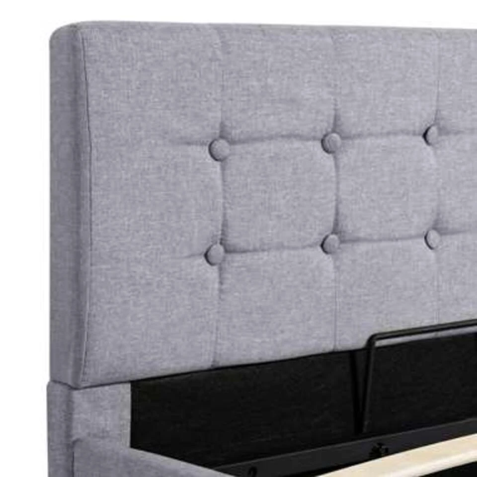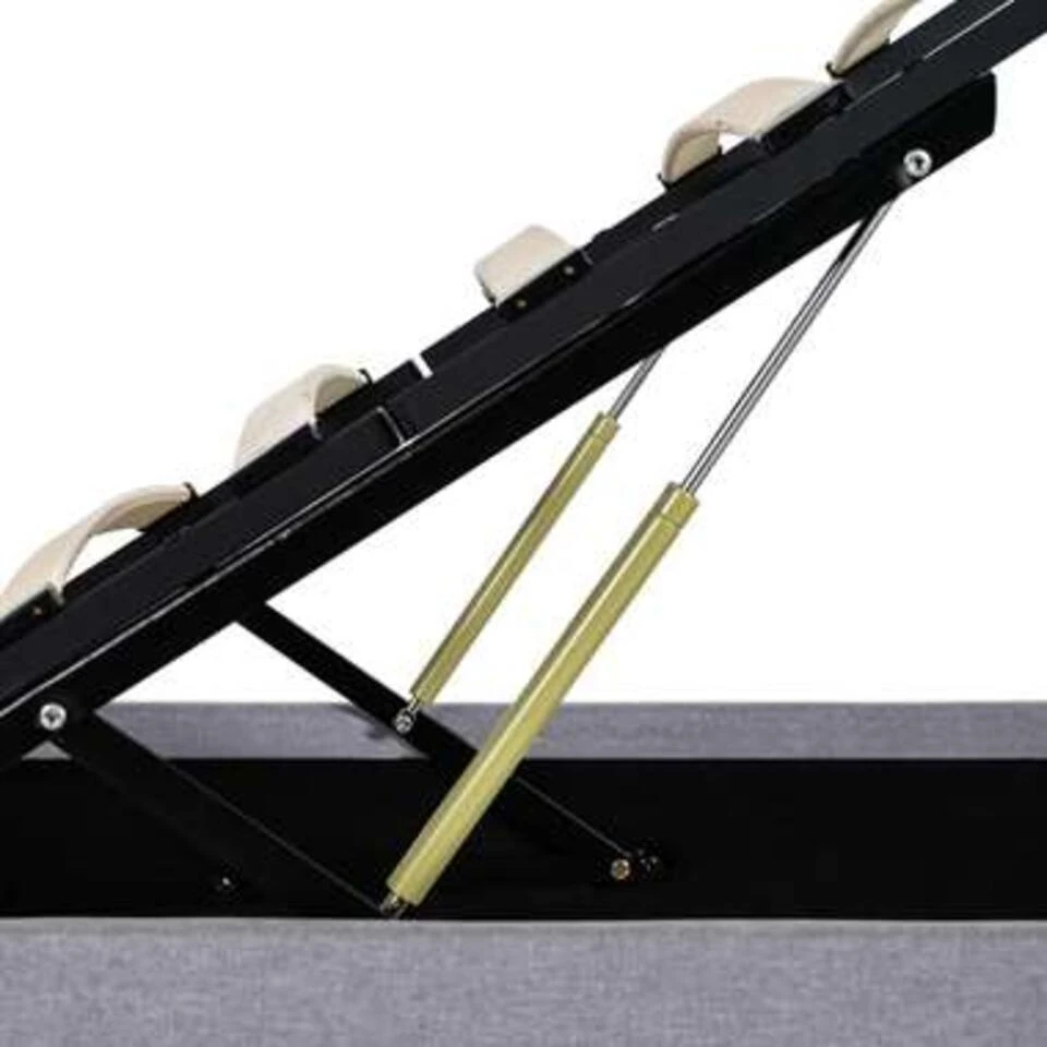 Dit beklede bed verandert de ongebruikte ruimte onder je matras in opbergruimte. Zo heb je voldoende ruimte voor het opbergen van kleding, dekens, beddengoed, enz. Het hydraulische frame blijft omhoog staan als hij omhoog is getild, zo heb je beide handen vrij om spullen op te bergen of te pakken.