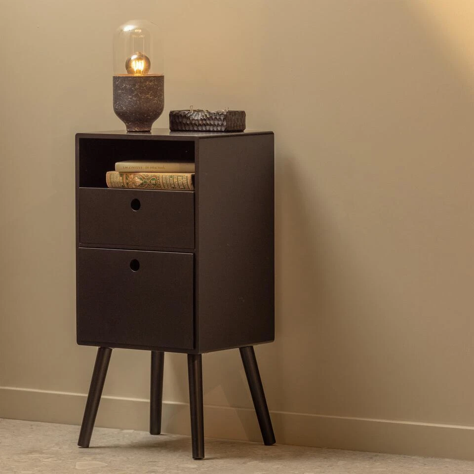 Het Ozzy nachtkastje komt uit de collectie van het Nederlandse interieurmerk WOOOD en is onopvallend stijlvol door het eenvoudige design. Het gebruik van het afgelakte MDF hout zorgt ervoor dat het nachtkastje kalmte uitstraalt en zich gemakkelijk in de stijl van jouw slaapkamer voegt.
