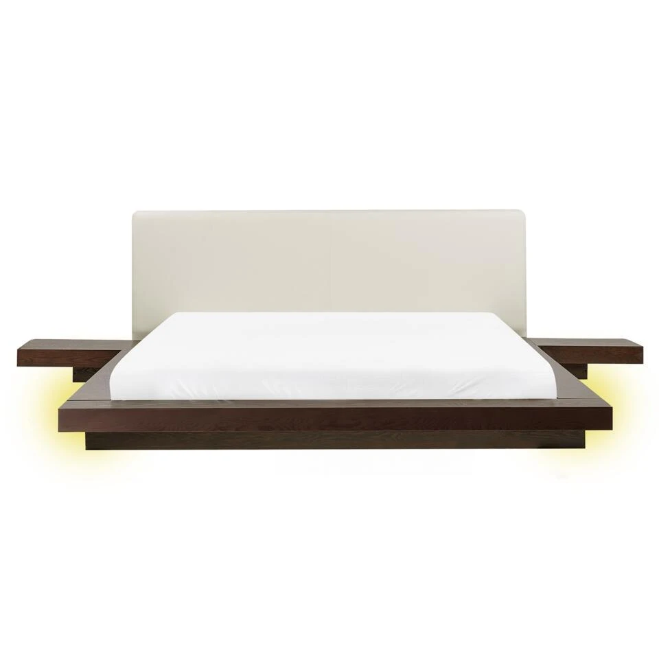 Aanbod omvat: 2 x Nachtkastje, 1 x Lattenbodem (14 rechte latten), 1 x Bedframe, 2 x LED strip (120 cm elk), Niet inbegrepen: Matras, beddengoed en kussens